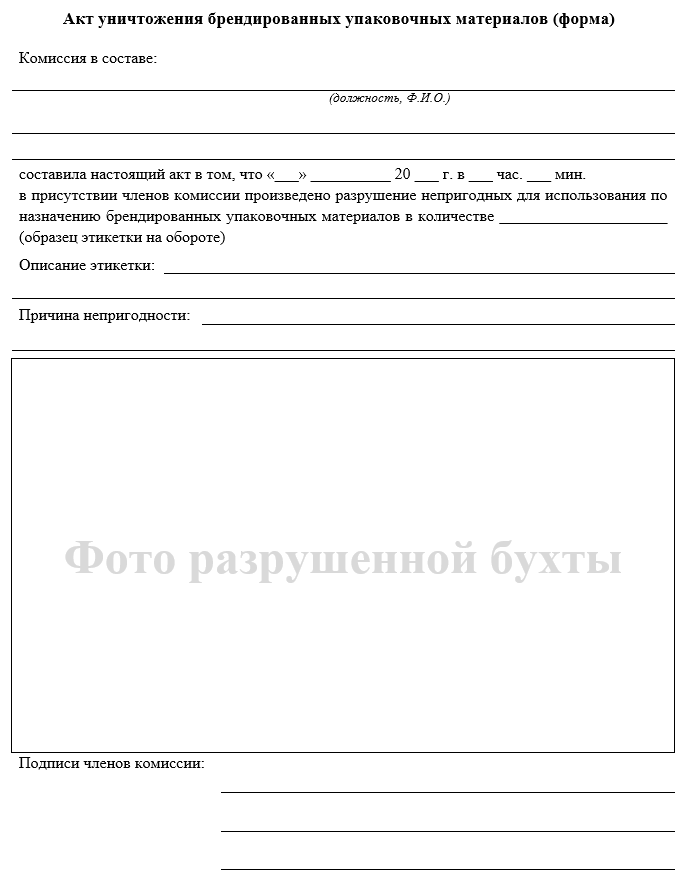 - акт уничтожения брендированных упаковочных материалов (рис. 1);